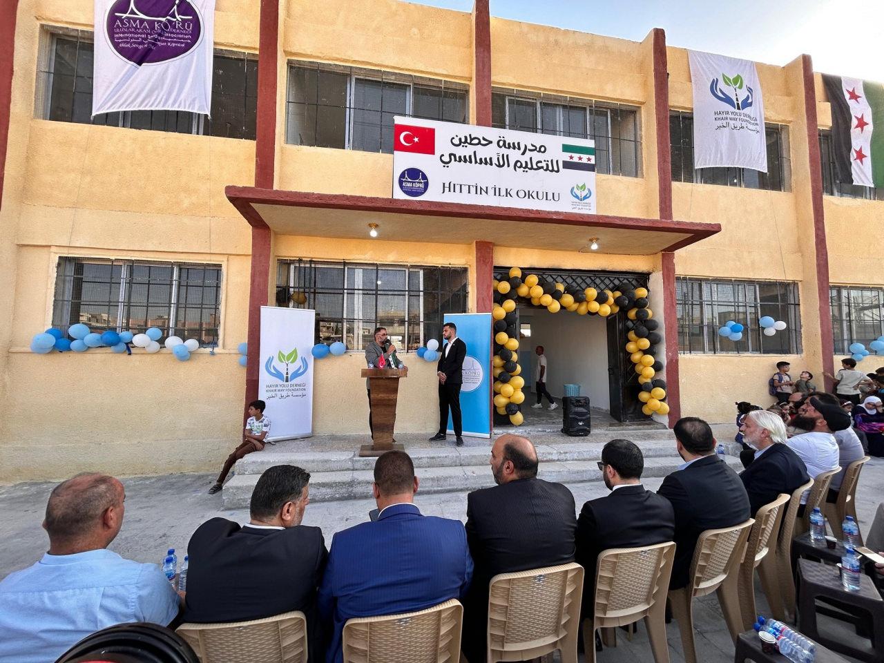 Suriye’nin İdlib vilayetine bağlı Han Şeyhun bölgesinde Asma Köprü Uluslararası Öğrenci Derneği ve Hayır Yolu Derneği tarafından tadilatı tamamlanan Hıttin Okulu hizmete açıldı.